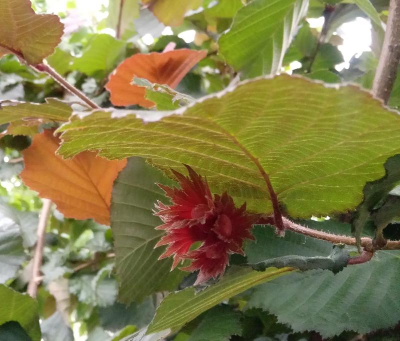 In meinem Garten steht 'Webbs Preisnuss'. Ein frohwüchsiges Gehölz, die Nüsse sind jetzt etwa erbsengroß. Darunter wachsen keine Brennesseln, aber dadurch würden sich die Eichhörnchen bestimmt nicht von der Ernte abhalten lassen.