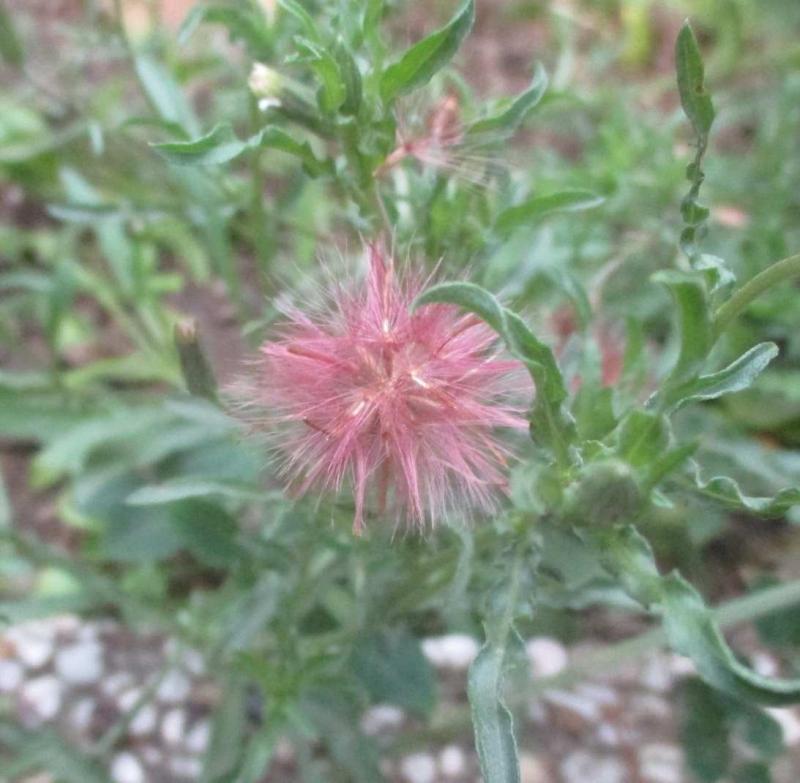 Inzwischen haben die Pflanzen auffallende, zierende rote "Pusteblumen" entwickelt (siehe Bild). Vielleicht hilft das bei der Bestimmung weiter...