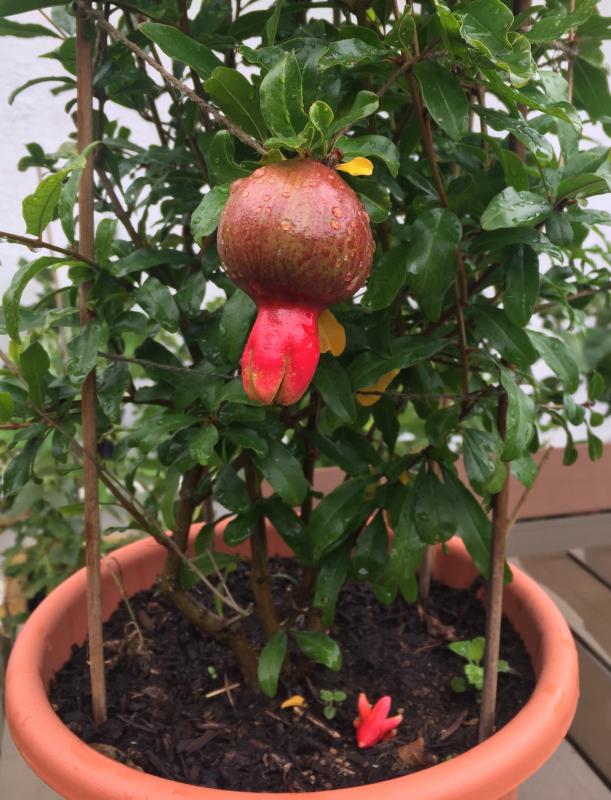 Mein Granatapfel blüht jetzt gerade noch mal, von Früchten keine Spur.