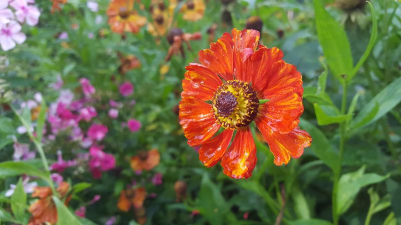 Ich habe ja nicht gewußt, daß Helenium eine so üppige Nachblüte macht! Es war ganz schön aufwändig, nun erst zurückzuschneiden bzw. die alten Blüten heraus zu putzen nachdem mir zahlreiche neue Knospen aufgefallen sind. Nächstes Jahr schneide ich eher zurück... :-\