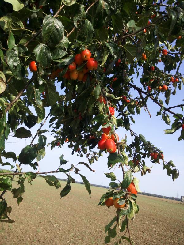 Ich vermute einmal das es eine Kreuzung zwischen Apfel und vielleicht einer Beere oder Pflaume ist.