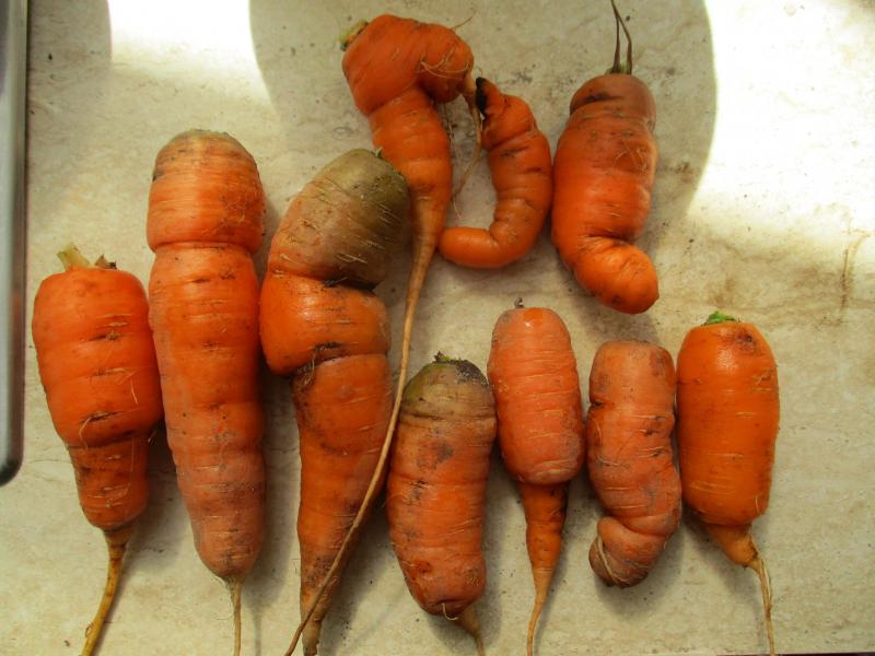 Fazit: Ja, Möhren lassen sich pikieren und verpflanzen und es gab wenig bis gar keine Ausfälle. Nachteil: Man muss schon sehr konzentriert arbeiten und drauf achten, dass die feinen Wurzeln ganz grade in die Erde kommen ... ::). Der Vorteil war, dass ich überhaupt Möhren ernten kann. Bei Direktsaat waren bisher die Schnecken immer schneller und sehr gründlich :P.