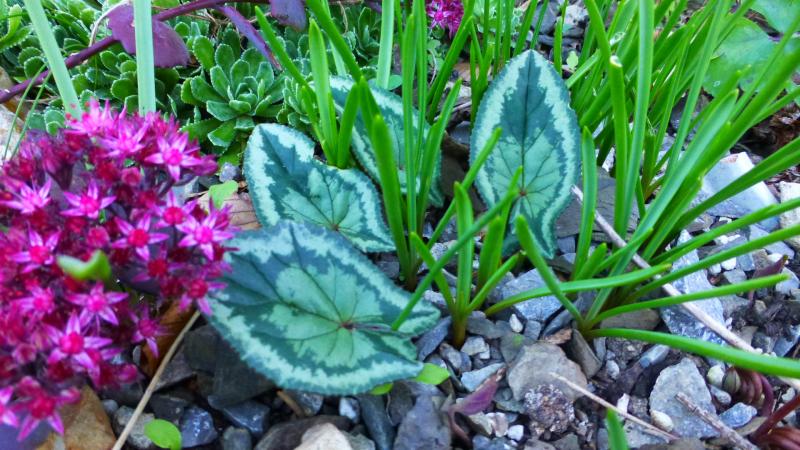 Neues zu den Cyclamen purpurascens „Ahlburg“: Auch das dritte im Frühling gepflanzte Ahlburg ist ein weiß blühendes C. hederifolium. ::)