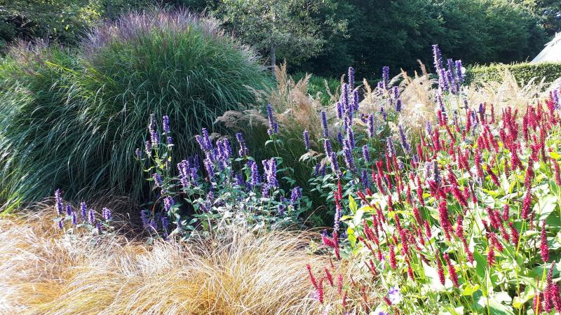 Absolute Lieblingskombi der Gartengestalter ... kam immer wieder vor: Blaue Agastache und roter Kerzenknöterich. Komisch, meine hellblaue 'Blue Fortune' ist schon durch... Diese dunkelblaue war einfach noch toll. :o