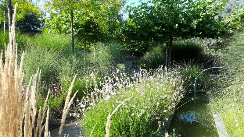 Eingang zum traumhaften weißgrünen Gräsergarten von Fenna Graf, der im Frühsommer mit riesigen weißen Alliumbällen ganz anders wirkt. Siehe obigen Link. ;D