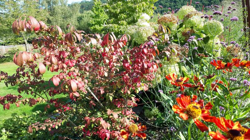 Im Steppenbeet mischt nun auch noch einmal das Dunkelrot der Knautia mit.