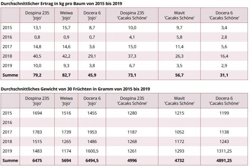 In Veitshöchheim und anderen Standorten in Deutschland werden momentan zwei hypersensible Unterlagen Docera 6 und Dospina 235 mit Weiwa bzw. Wavit als Standardunterlage in einem Bundesversuch verglichen. Bei Docera 6 sind 30 % der Bäume auf der Versuchsfläche in Unterfranken ausgefallen, noch gesunde Bäume weisen aber ebenfalls eine schlechtere Vitalität auf. Dagegen ist bei Dospina 235 kein Ausfall zu beanstanden. Die Bäume haben einen leicht stärkeren Wuchs, ähnlich hohe Erträge und gute Fruchtgrößen wie auf Wavit oder Weiwa. Vor allem auf schlechten Böden und Lagen mit wenigen Niederschlägen kann diese hypersensible Unterlage eine Verbesserung darstellen. Weitere Ergebnisse von anderen Standorten sind aber noch abzuwarten. Erste Sorten werden zurzeit auf Dospina 235 veredelt.