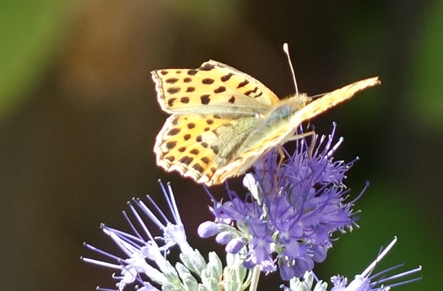 Den habe ich heute zum ersten Mal bei mir im Garten gesehen, den kleinen Perlmuttfalter