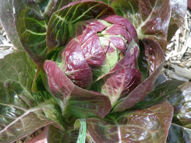 Der Radicchio schaut besser aus, der wurde zusammen mit dem Zuckerhut gepflanzt.