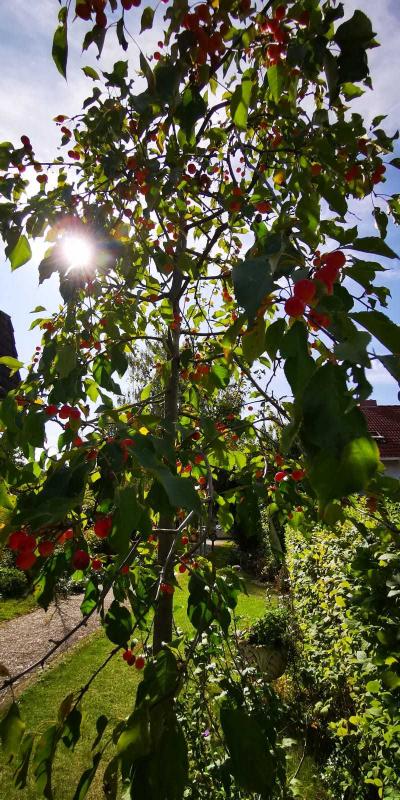 Herbstlich zeigt sich nun die Hamamelis, welche ihr unvergleichliches Farbenspiel beginnt. Leider habe ich es im Frühsommer wohl versäumt, ausreichend zu wässern, so dass sie kaum Blütenknospen angesetzt hat. Aber möglicherweise hatte sie sich letztes Jahr nach dem Pflanzen auch etwas verausgabt, denn schon im ersten Standjahr blühte sie üppigst.