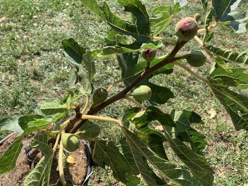 Jetzt tut sie sich schwer, da so viele Feigen dran hingen, habe ich keine Wurzeln angeschnitten.