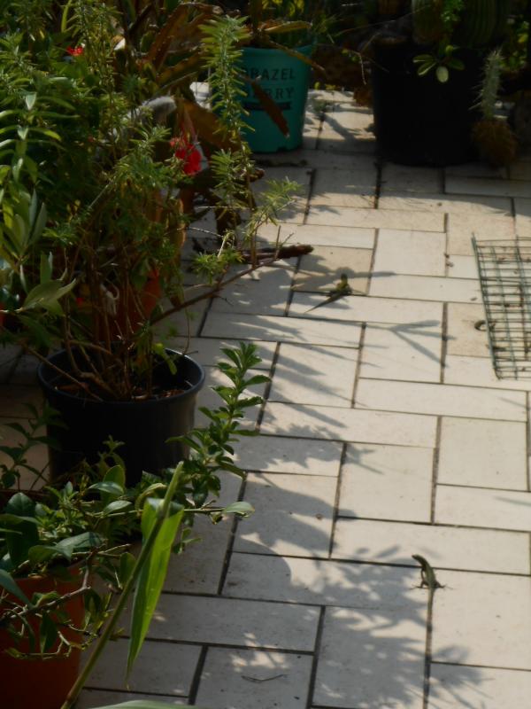 "Meine" sehe ich in den letzten Tagen nicht mehr auf ihren üblichen Plätzen. Bei dem Wetter könnten sie sich doch noch sonnen :-\? Nur Ende letzter Woche sah ich eine kleine vor der Garage davon flitzen.