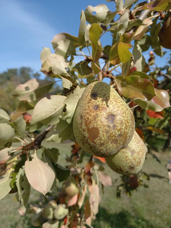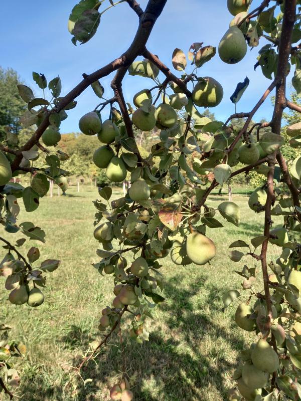 Auch gut im Ertrag, Diels Butterbirne. Gute Tafelbirne an ensprechenden Standorten. Pflückreife: mitte Oktober; Genussreife: ende Oktober bis mitte Dezember.