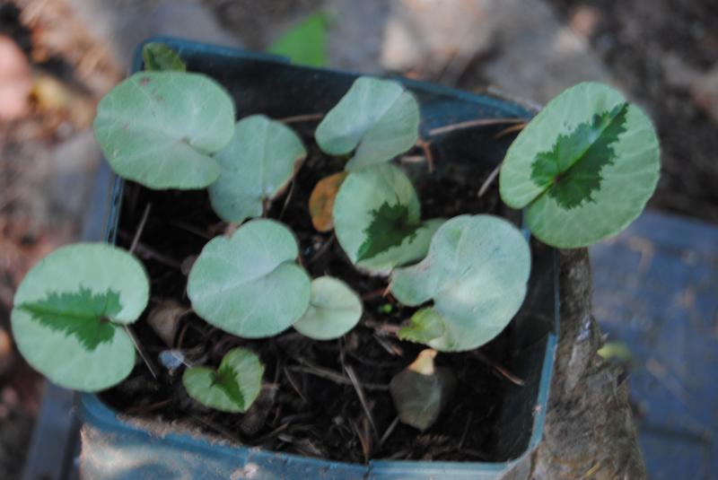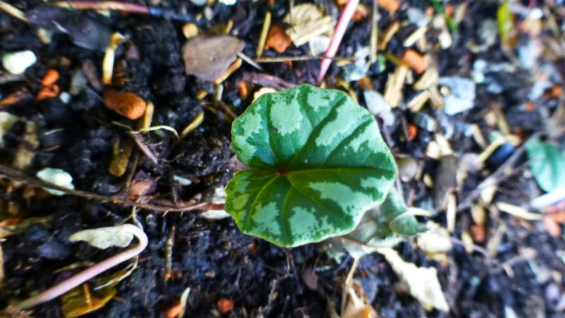 Cyclamen purpurascens, Aussaat Februar 2019, jetzt die erste Blüte (stehen im Topf).