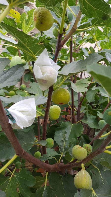 Bei meiner grün gelben Feige deren Sorte ich nicht kenne, konnte ich noch keine Vollreif ernten. Sobald sie anfangen weich zu werden, fressen die Wespen tiefe Löcher hinein. Bei meinen anderen Sorten ist das nicht so extrem. RdB steht direkt daneben, da gehen sie gar nicht ran. Habe jetzt einige mit Vlies umwickelt und oben zu geklammert. Hat jemand Erfahrung ob man Vlies nehmen kann wegen Regen oder Fäulnis, oder braucht man spezielle Obstsäckchen. Unsere Teebeutel sind zu klein. Was verwendet Ihr um die Feigen vor Wespenfraß zu schützen?