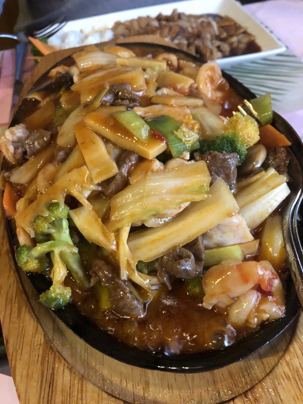 Es gab Tie Pan mit 3 Sorten Fleisch, Garnelen und Gemüse.