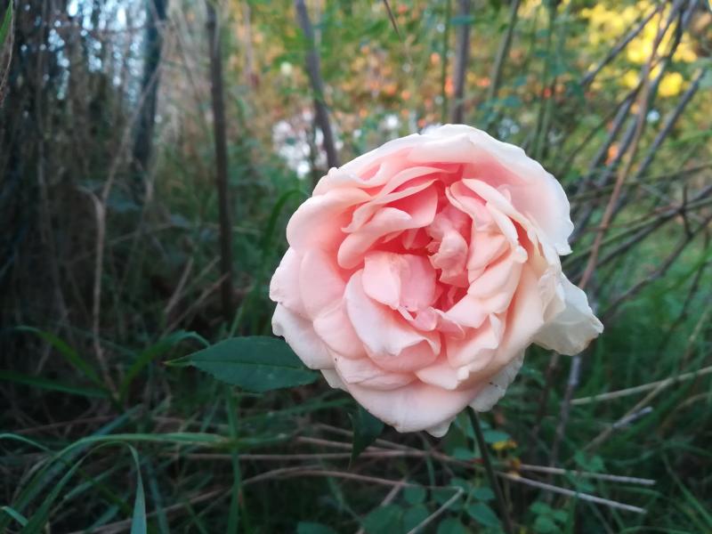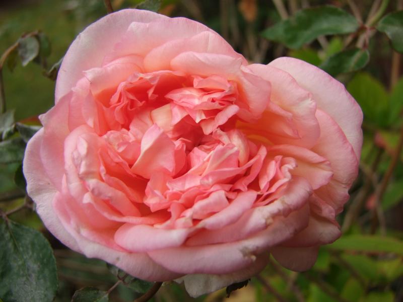 'Mme.Emilie Charron' leicht flatterhafte Blütenanordnung in Rosétönen und schöner Duft.