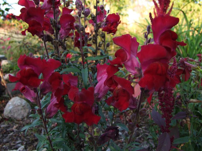 Die dunklen Löwenmäulchen blühen hier auch und tauchen jedes Jahr an an deren Stellen mit leichten Farbvarianten auf.