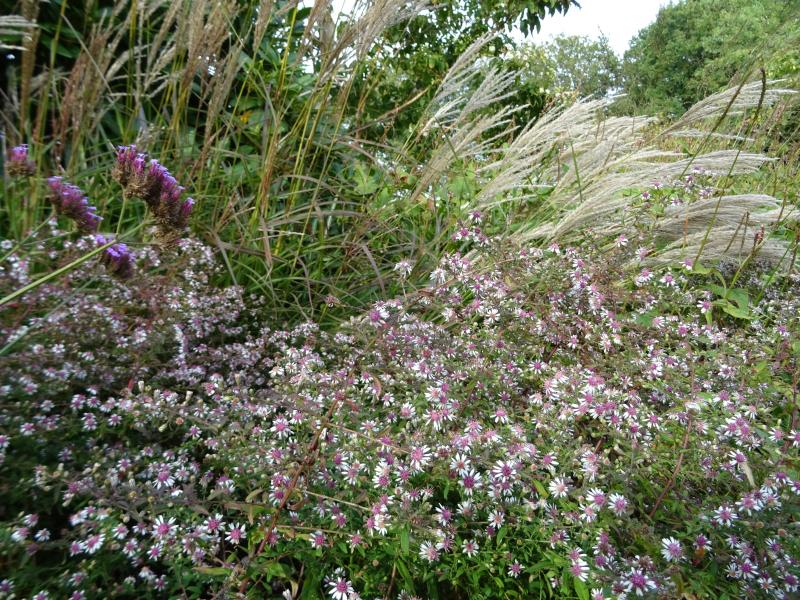 Aster lateriflorus horizontalis mit Miscanthus sinensis 'Ferner Osten'