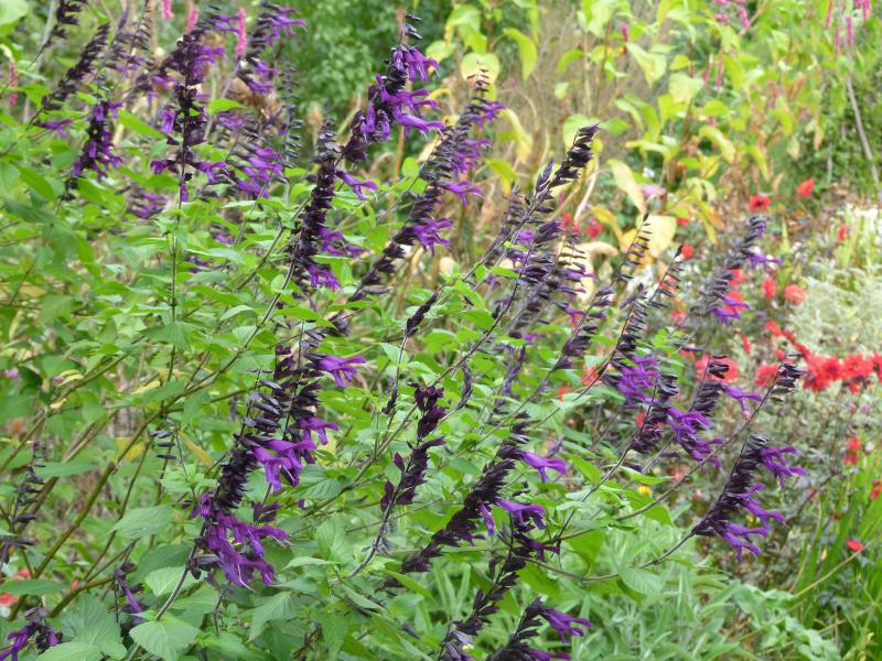 Der Knöterich hatte auch bisher keine Probleme. Salvia 'Amsitad' und ein noch gestauchter Enzianstrauch (Lycianthes