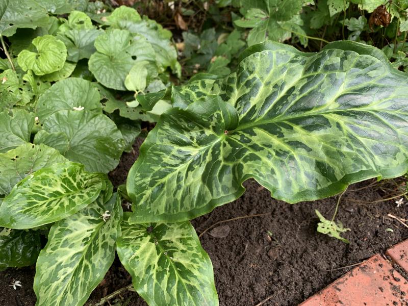 Arum italicum ‚Green Gift‘ ist genau mein Beuteschema. Vielleicht können wir ja tauschen, wenn meins etwas zugelegt hat. Ich habe gerade festgestellt, dass ich mitten in ‚Lady Aron‘ eine Hosta gesetzt habe.