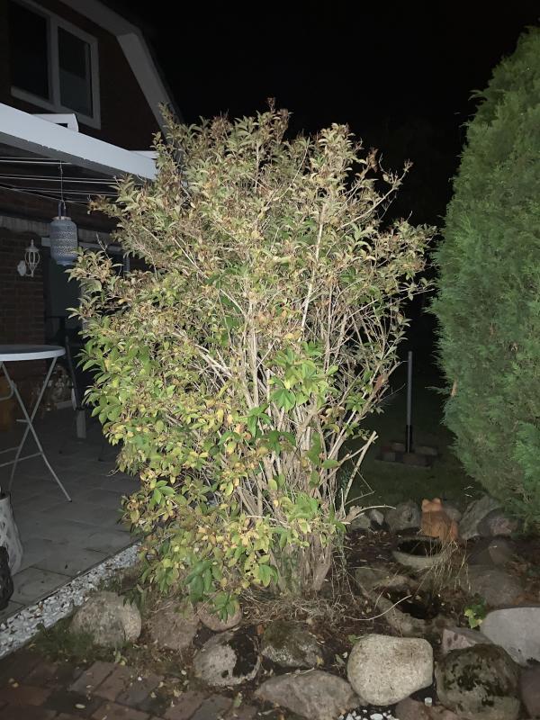 hier ist mein erster Beitrag und schon geht's um Gartenfehler. Bei uns im Garten ist so ein Busch, der im Sommer schön rötlich blüht. Jedes Jahr schneidet mein Freund den schön rund und wir hängen zum Winter hin immer eine Lichterkette drum herum...