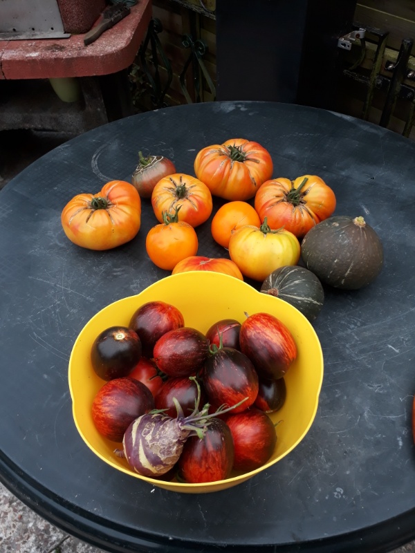 Die schwarze Tomatensorte sieht ja interessant aus. ;) Schöne Ernte! :D