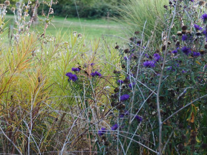 Amsonia Hubrichtii [Annemarie Eskuche] und Aster novae-angliae 'Büchter Nacht.