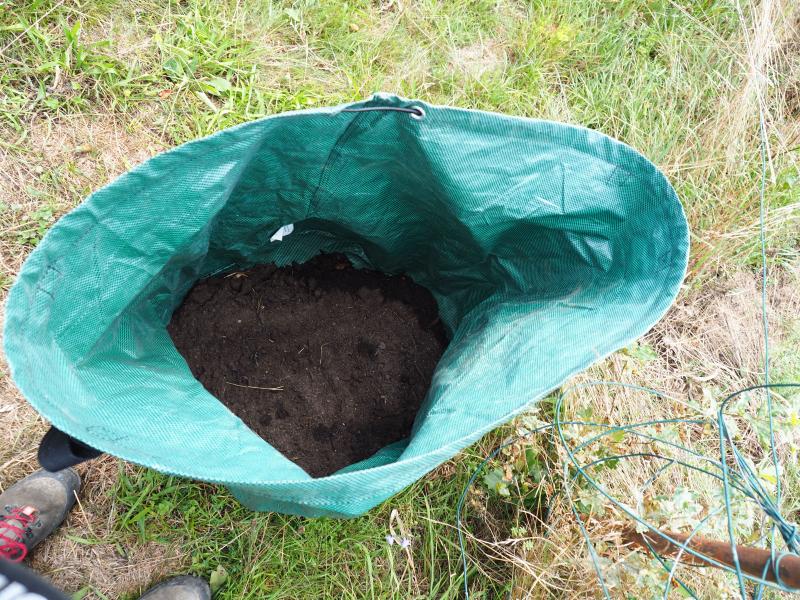 Mutterboden heißt jetzt Oberboden und ist de facto Klärschlammkompost. Davon hatte ich im großen Sack noch was da.
