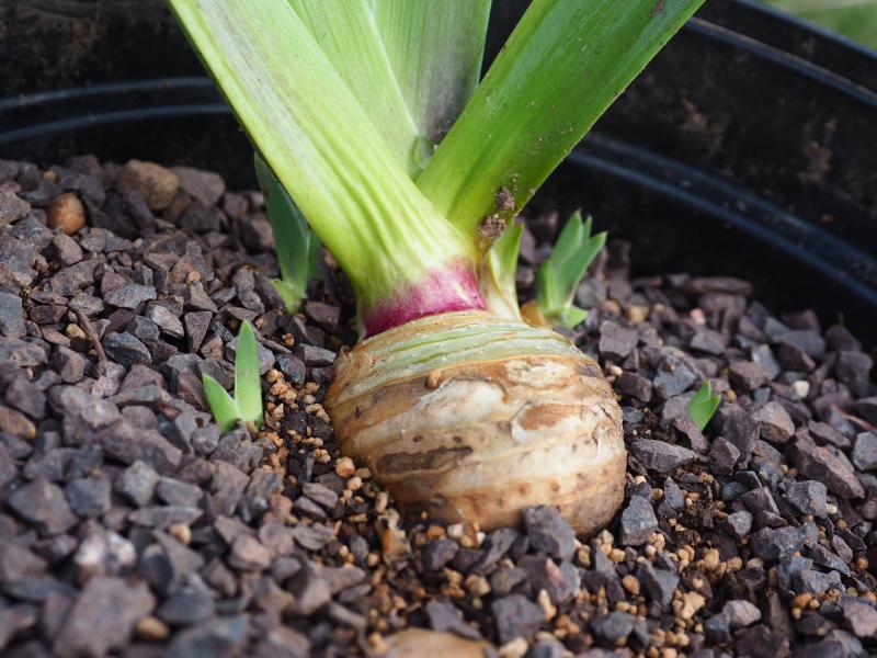 die Iris werden platziert - übrigens ist der ganze Ablauf jetzt nach dem Regen bei milden Temperaturen sehr viel flotter als noch letzte Woche in der Hitze und Trockenheit.