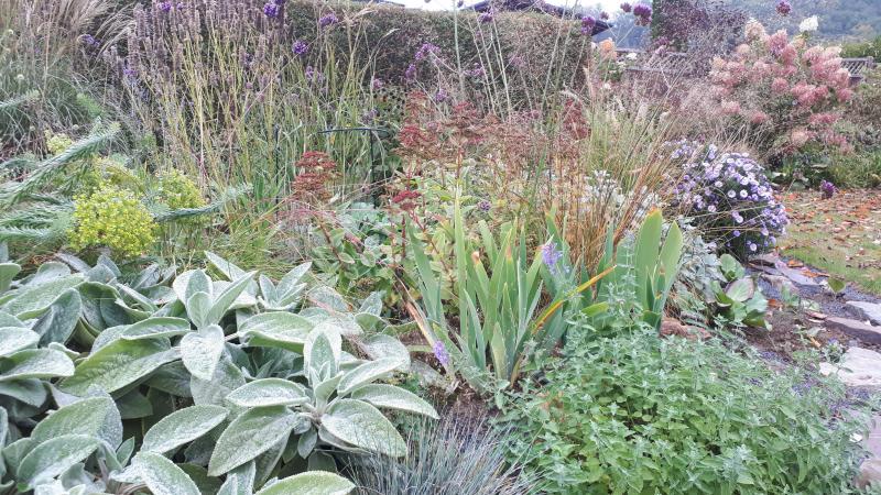 Oder meinst Du unten den kleinen Bodendecker ? Das ist Gold- Oregano... soll extrem wüchsig sein. Hoffentlich bereue ich den winzigen Ableger nicht, den ich im Frühjahr gepflanzt habe. :o