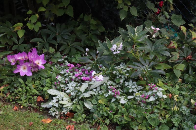 Das ist einer der Standorte, an denen die Colchicum stehen, die alle wie ´Oktoberfest´aussehen und unter 3 verschiedenen Namen erworben wurden. Allerdings nie als ´Rosy Dawn´. Rod Leeds schrieb dazu, dass die Sorte leuchtend rosa mit Würfelmuster sei und ein weißes Zentrum habe. Die mittleren Blütenblätter sollen bei frisch aufgeblühten Exemplaren von oben betrachtet ein Dreieck bilden, was die Sorte unverwechselbar mache. Er gibt auch an, dass sie weit verbreitet ist, aber oft unter anderen Namen angeboten wird.
