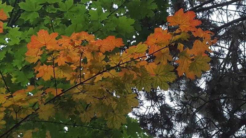 Es muß nicht immer der Amberbaum sein - der Ahorn fängt auch an , zu leuchten.