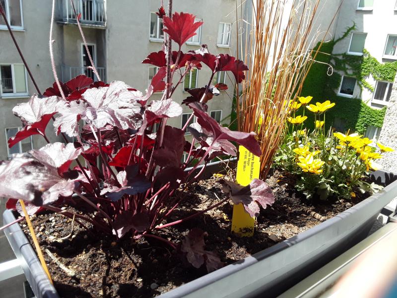 Foto bald nach Pfkanzung. Dr Horst hat sich verdoppelt, und deutlich höher, sonst wenig Veränderung. Meine Nachbarn denken sicher, es sind Plastikpflanzen ;D