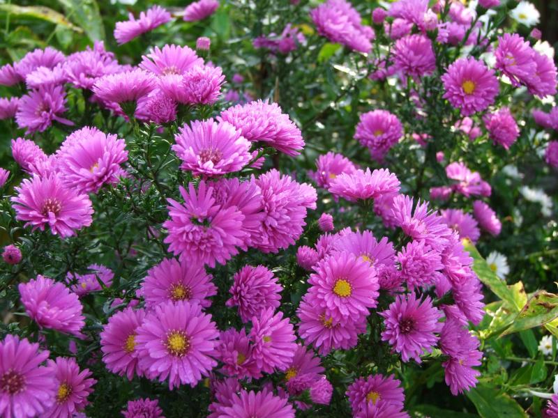 Aster novi-belgii 'Crimson Brocade'hatte im ersten Jahr gleich Mehltau ,steht aber jetzt gesund da.