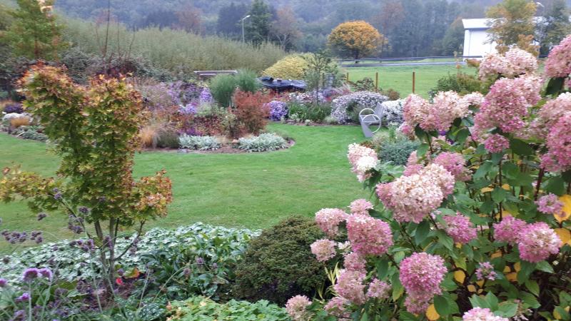 Hier bei uns seit Tagen Dauerregen... Hoffentlich liegen bei den Wassermassen nicht alle Blätter am Boden, bevor sie überhaupt färben konnten. :-\ Ich zeige daher heute meine Herbstimpressionen aus sicherem Standort von der überdachten Terrasse aus. :P