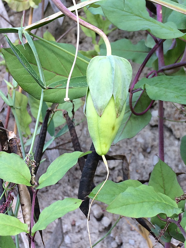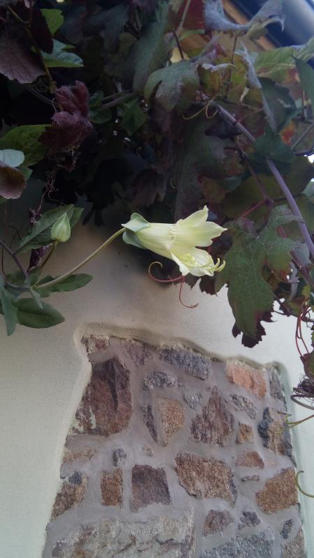 Seit Anfang Oktober blüht meine Cobea pringlei. Sie steht knapp 2 Meter vom Stamm einer Eibe, die ich pilzförmig schneiden lasse, entfernt.