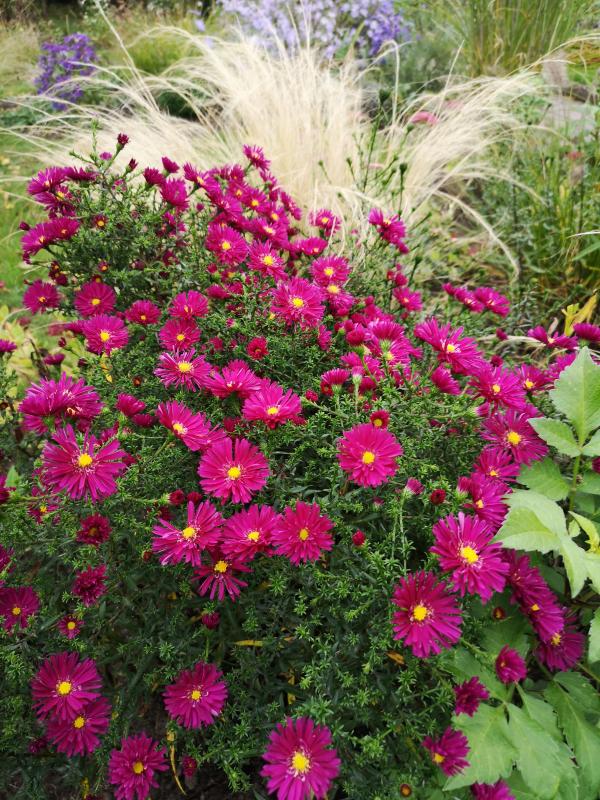 Wie schon letztes Jahr komme ich von dieser Aster im Stipa nicht los. Kreise um sie wie die Motte ums Licht :P. Irl ist sie sehr dunkelrot-pink.
