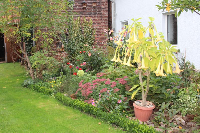 Die Brugmansia kommt noch mal zur Blüte.