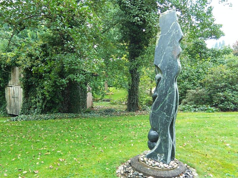 Die Skulptur ist 2,8m hoch und 750 kg schwer, hab sie auf eine Kugel gestellt damit ich "Sie" von jeder Seite vom Haus aus sehen kann😁