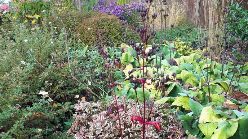 Hier ist es seit gestern plötzlich deutlich kälter geworden. Brrrrrr... :-X Beim Rundgang fällt auf, daß aber auch Stauden erstaunliche Herbstfarben hervorbringen können! Richtig satt und opulent kommen sie nun in knalligen Farben daher... ein kleiner Überblick. :o