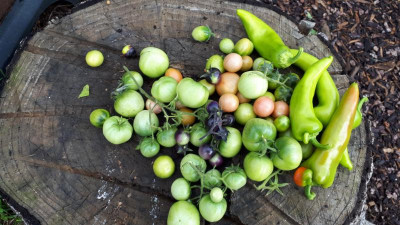 Also, ich habe nun die Tomaten und die Zucchini abgebaut und die Chilis zum Nachreifen ins Haus geholt. Es tat mir schon leid um die vielen noch grünen Tomaten und so habe ich eine Schale voll ins Haus geholt. Ob die wohl noch nachreifen? Was meint Ihr... ??? In diesem Jahr ist die Ernte wirklich locker nebenbei zu bewältigen gewesen, also hier kein üppiges Jahr für Tomaten und Co. :-[