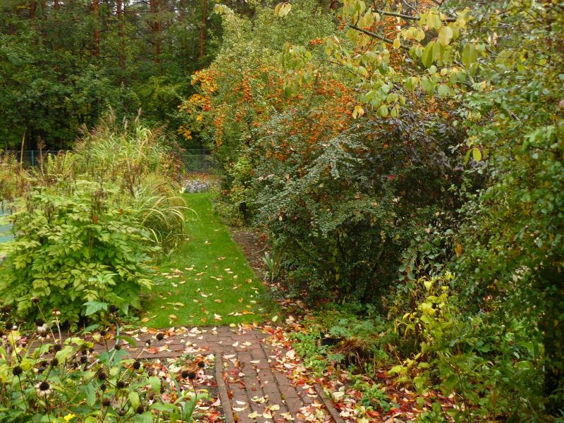 Im Vorgarten hat sich wenig verändert, nur die Herbstfärbung der Kupferfelsenbirne ist hinzugekommen: