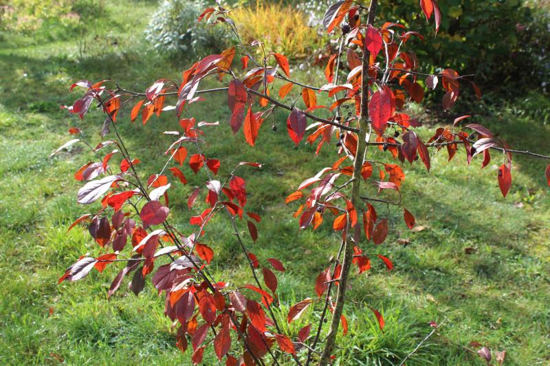 Etwas länger als Amelanchier hält der Rhus schon. Ich meine fast, der kräftig gefärbte kleine im Topf hätte schon vor drei Wochen gefärbt. Die Mutterpflanze fängt gerade erst an. Neben einer Amelanchier. :D Ich kann davon dann später nochmal ein Bild zeigen.