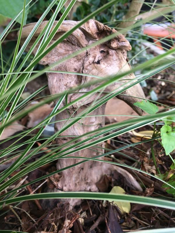Ich habe nur noch den ‚trolldich!‘ Immer ein bisschen zerknautscht dieser Holzkopf. Liegt aber im grossen Garten.