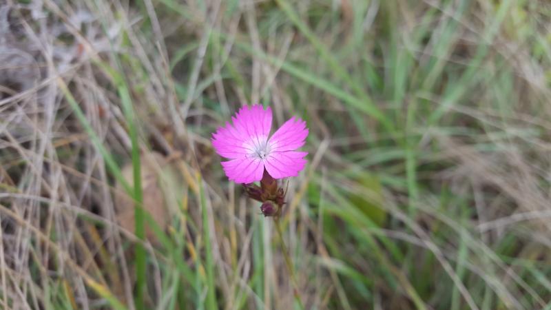 Die gezeigte Pflanze ist mE eine gewöhnliche Karthäusernelke ( Dianthus carthusianorum ), das Bild ist vom Okt 2020, im Harz.
