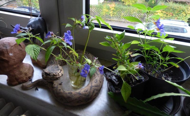 Meine draußen ausgegrabenen fangen gerade am Fenster an zu blühen. Aber auch die Stecklinge im Wasserglas blühen reichlich und haben schon kräftige Wurzeln. Bei diesen beginnen dank Pinselarbeit die ersten Samenkapseln sich zu entwickeln.