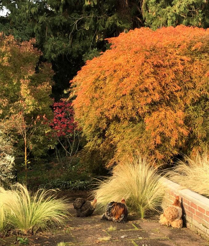Hier kam heute Mittag endlich einmal die Sonne heraus, und das Laub glühte noch einmal auf, so dass ich nach der gestrigen Fotorunde gleich nochmal mit der Kamera durch den Garten gegangen bin. :D