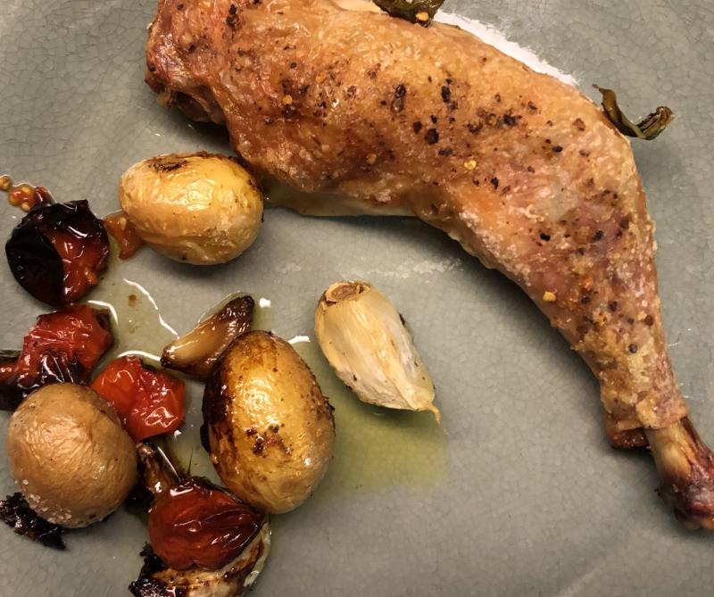 Ich hab’s mir heute einfach gemacht. Kleine Hähnchenkeulen mit Kartoffeln, Süßkartoffeln. Zwiebeln, Rosenkohl, Kürbis und Pilzen aufs Backblech, Salz, Pfeffer, Oregano, Olivenöl und bei 180 grad Umluft etwa 50 min in den Ofen. Dazu Knoblauchquark.