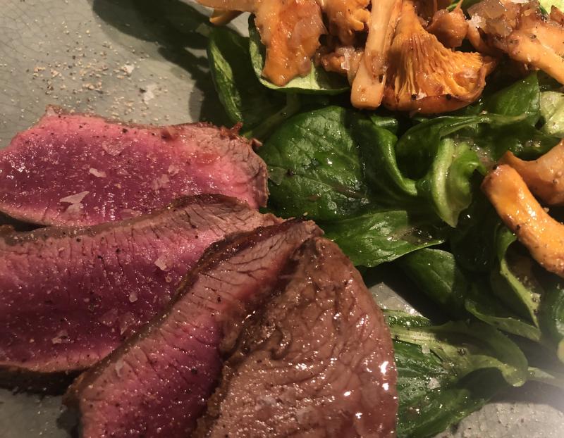 Nachtrag: Samstag gab es Lamm mit Feldsalat und Pfifferlingen.